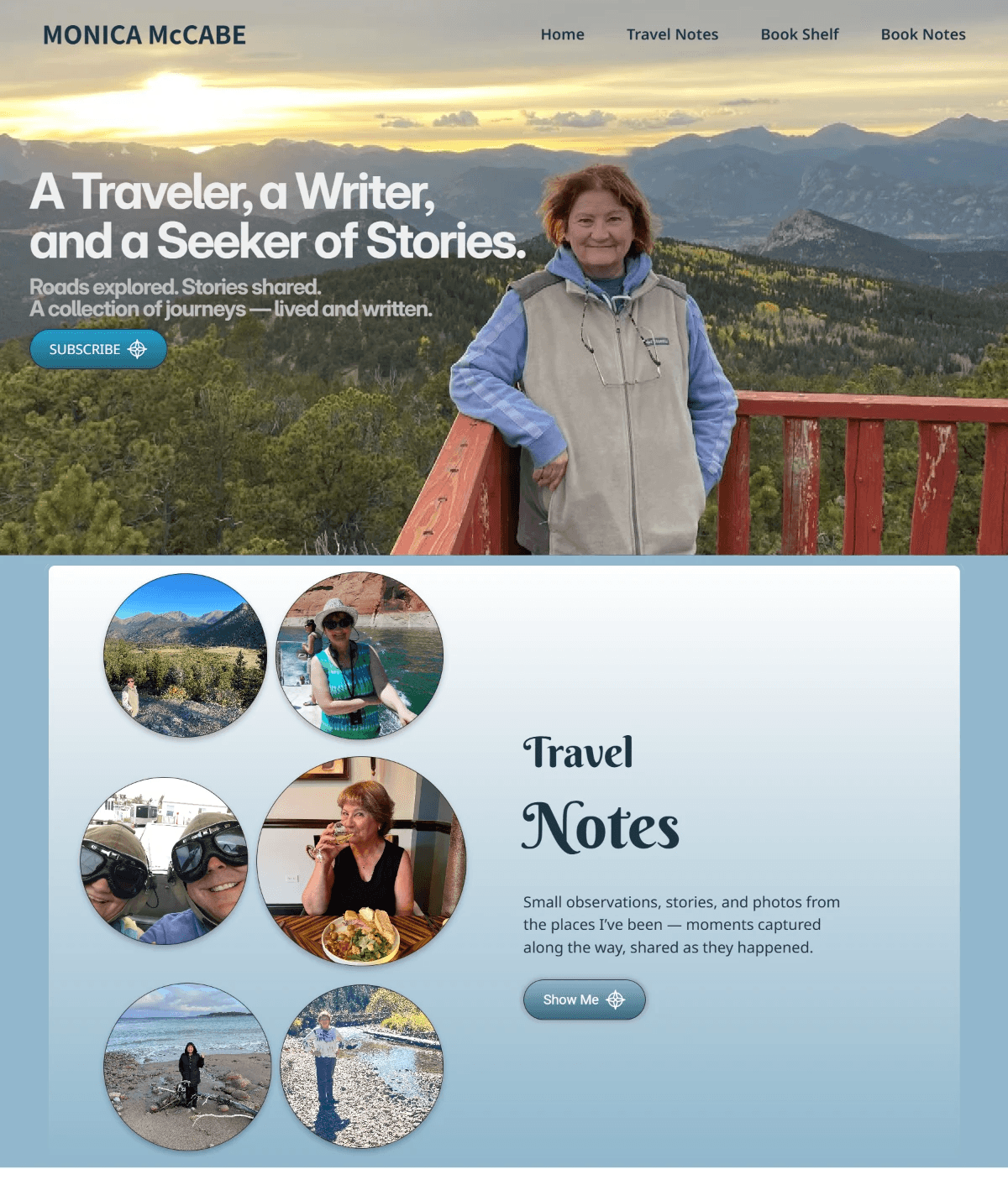 The client was a travel writer with an established online presence, but her existing site was built around her books and she felt stuck in a chapter she was moving on from.